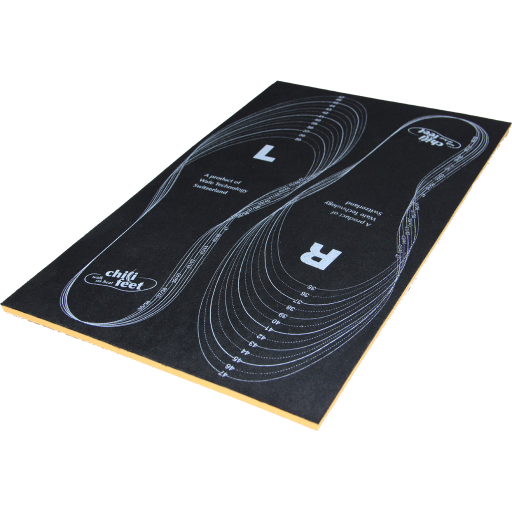 Die chili-feet Wärmesohlen wandeln beim Gehen Druckenergie direkt in Wärme um, ohne jegliche Hilfsmittel. Nach 10 Minuten gehen erwärmen sich die Sohlen um bis zu 10 Grad und verleihen einen angenehmen Tragekomfort dank Mikrofaseroberfläche. Chili-Feet werden nachhaltig und umweltfreundlich hergestellt und die Produktion erfolgt ausschliesslich in Westeuropa. Das Wärmeproduzierende Material kann etwa 1.5 Mio. Mal zusammengedrückt werden. Dies Entspricht etwa dem Weg von Zürich nach Hamburg. Die chili-feet Einsatzmöglichkeiten sind enorm und umfassen viele Sportarten. Zum Beispiel Jogging, Nordic Walking, Wandern, Schneeschuhlaufen oder Alpinismus.